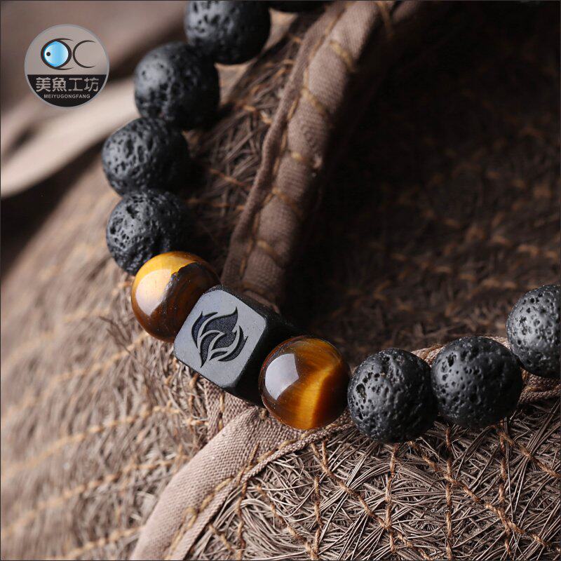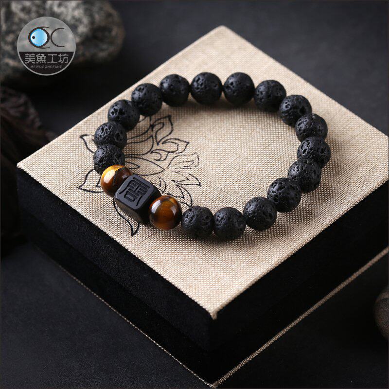 Original hand male Korean tide hand string volcanic stone tiger eye tiger eye stone couple a pair of lettering custom student personality