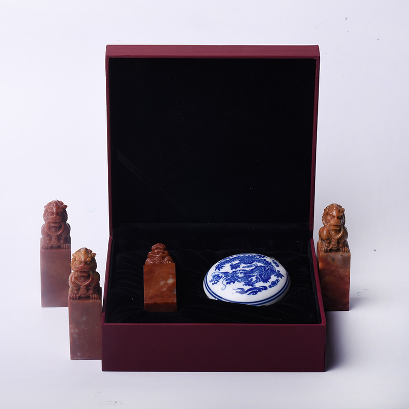 (West-Indian Society) Lone Mountain Indian Stone Door Lion Carving Buttons Hand Seal Engraving Seal Stone Square Stone Square Stone Square House Four Treasures Name Custom Sending Gift Box Loaded With Imprint Clay