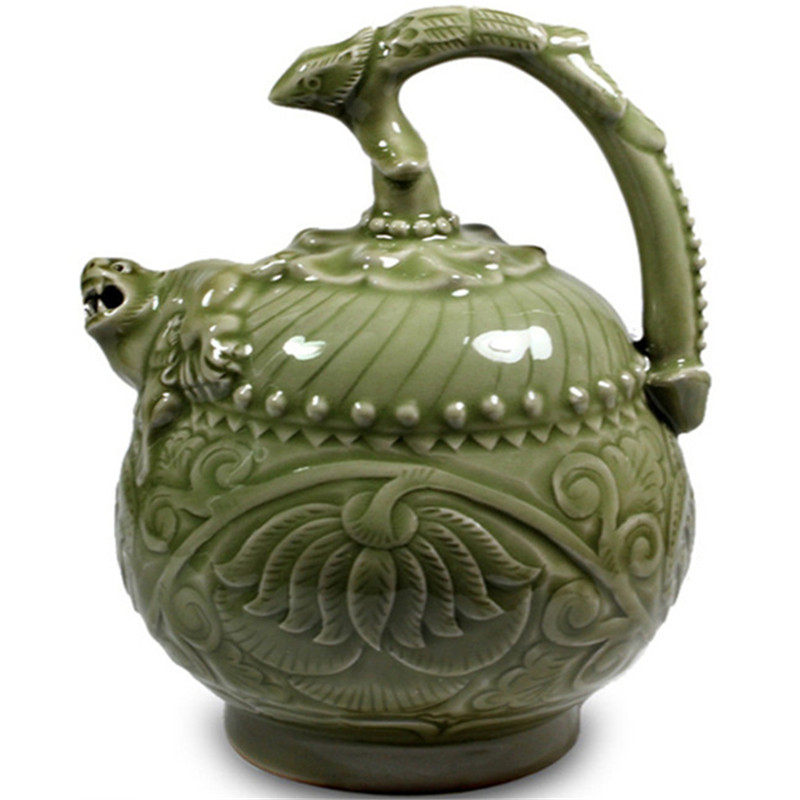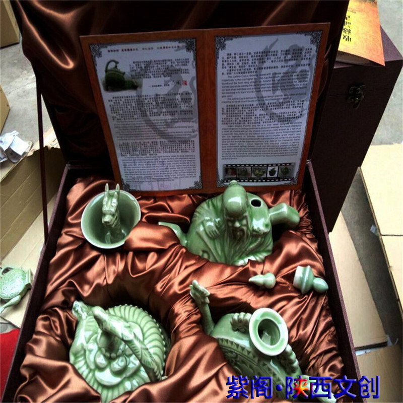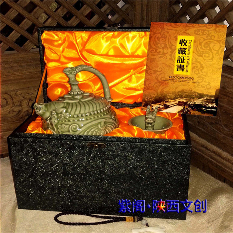 Shaanxi Yaozhou kiln porcelain blue glaze backflow pot wine ware antique faucet cup Jue cup abroad gift home decoration