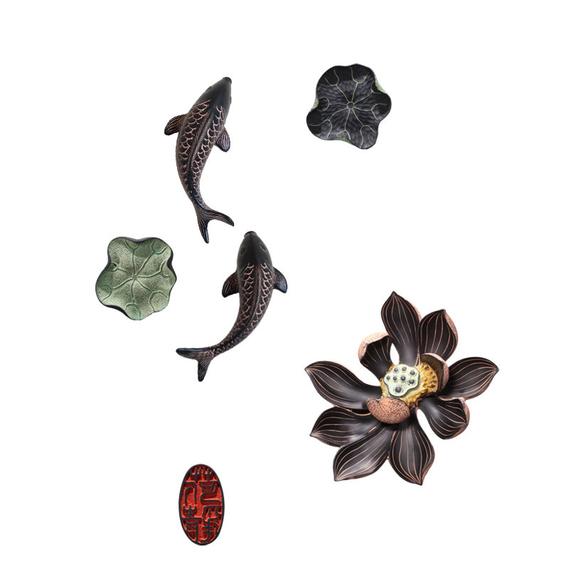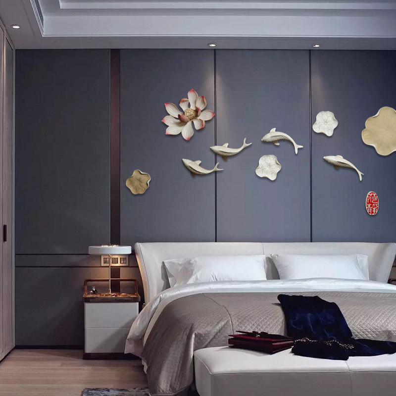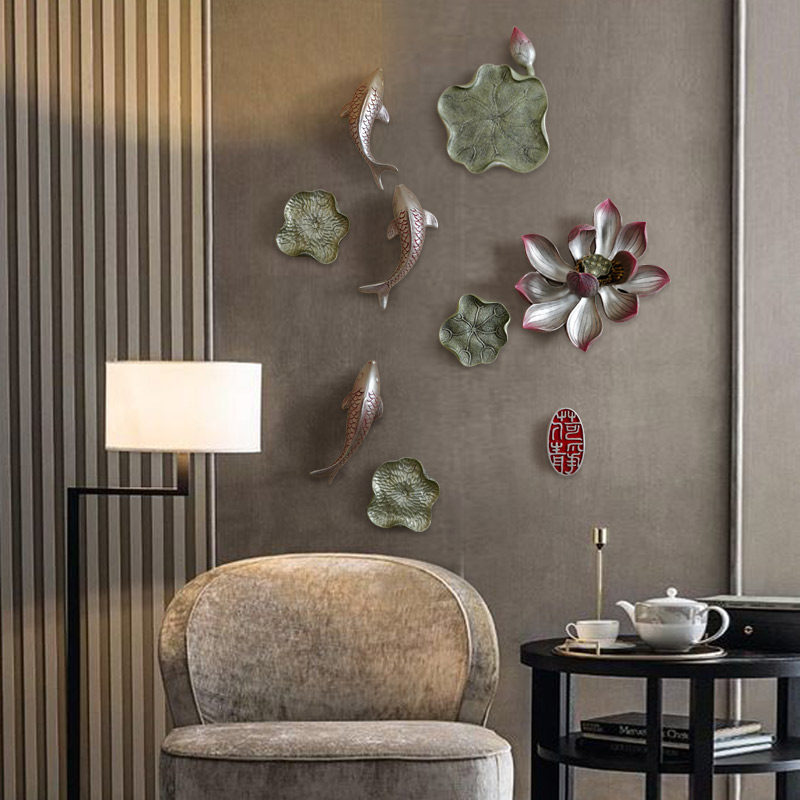Creative three-dimensional fish wall decoration Wall decoration pendant Chinese living room dining room background wall retro relief decoration