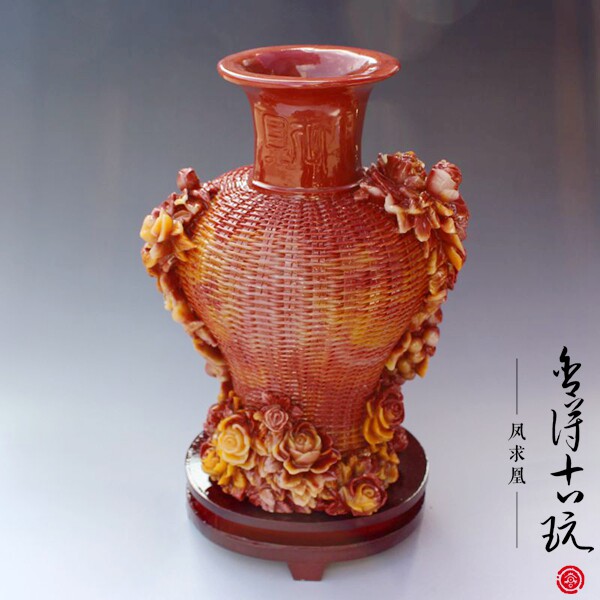 Imitation Sushi Hibiscus Stone Hibiscus Stone Precision Sculpture Vase Stone Carving Craftsmanship Gifts Swing Accessories House Decoration Pendulum Pieces Jade Engraving Collection