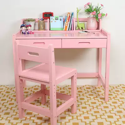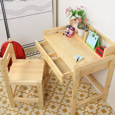 Children's desk bookcase combination Primary school boy boys home desk can be lifted and lowered to save space solid wood learning table