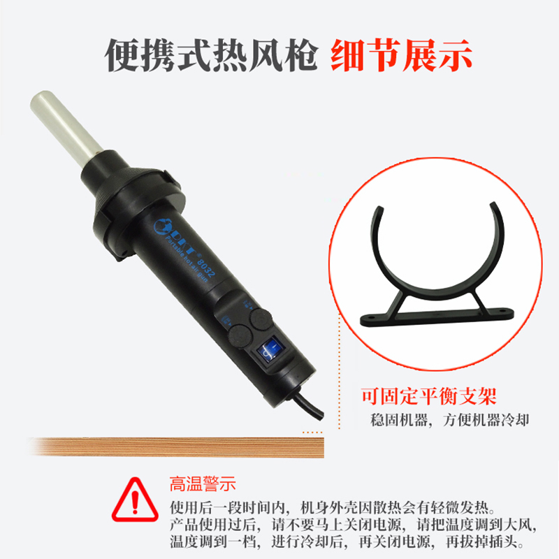Portable small hot air gun 8032 adjustable warm hot air cylinder IC chip desoldering gun mobile phone repair hot air table machine