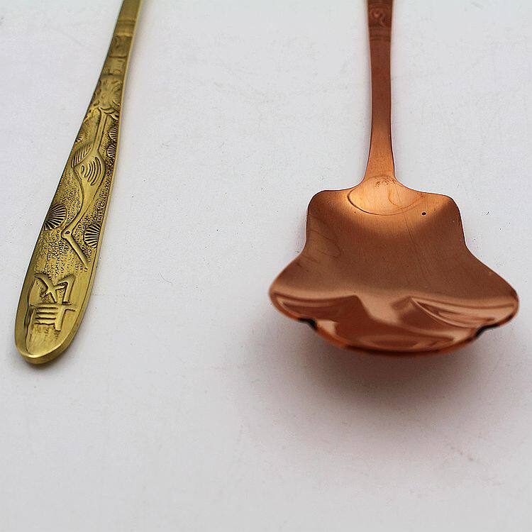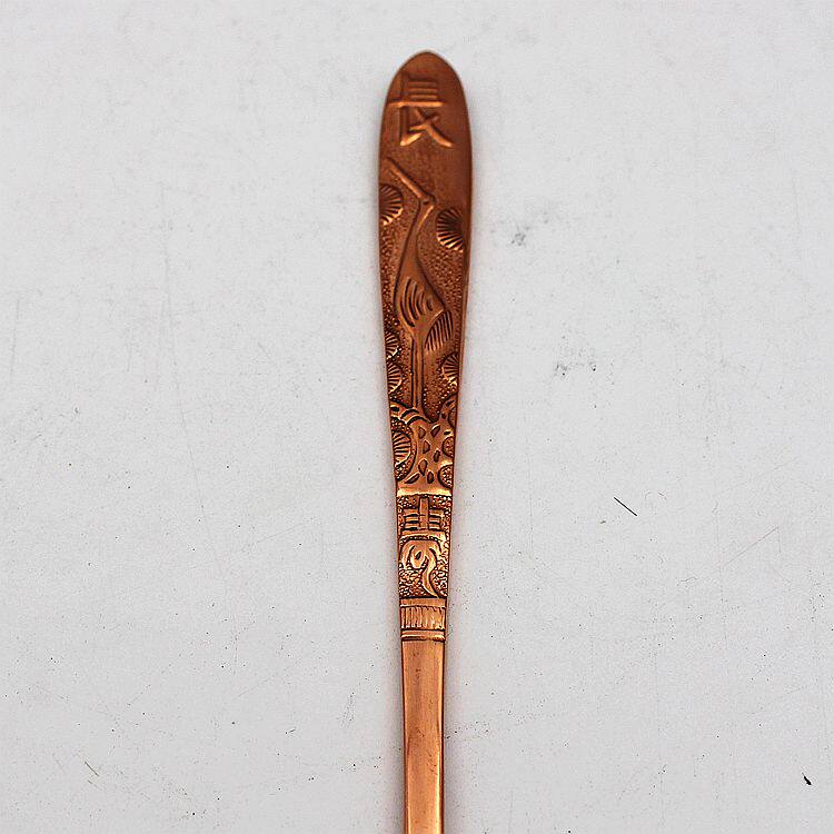 Pure copper thickened tableware Kitchen supplies soup spoon soup spoon Rice spoon Copper brass long handle carved medium spoon