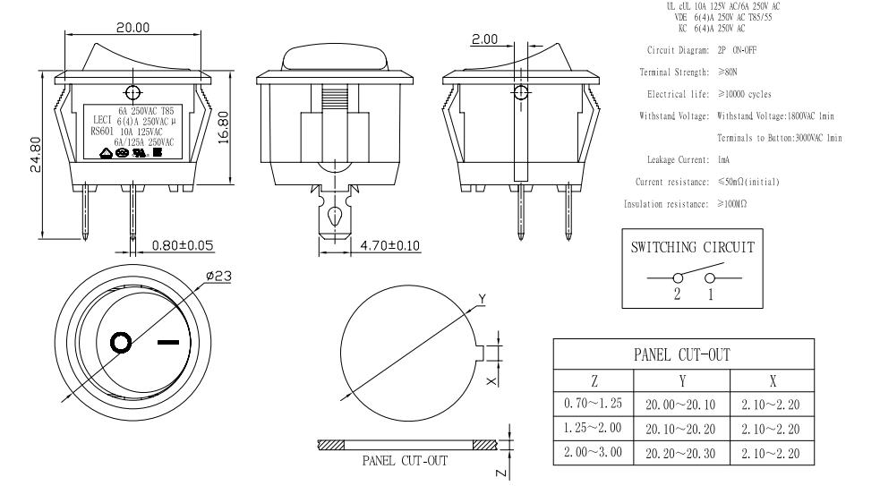 Round switch button 2 feet 2 gears Black rocker switch Thumb switch KCD small power switch