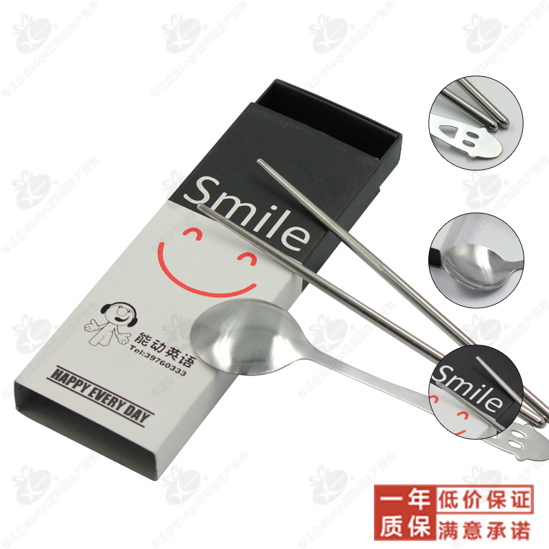 Smiley tableware chopsticks spoon 2-piece set custom printed logo outdoor travel home advertising gift wholesale