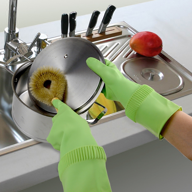Senlengthened Thickening of Imported Latex Dishwashing Gloves Kitchen Clean Housework Wash Clothes Brush Bowls Anti-Fold Water Retaining Gloves