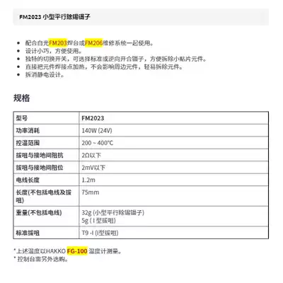 HAKKO Japanese white light FM2023-02 small parallel tin removal tweezers FM203 for FM-206