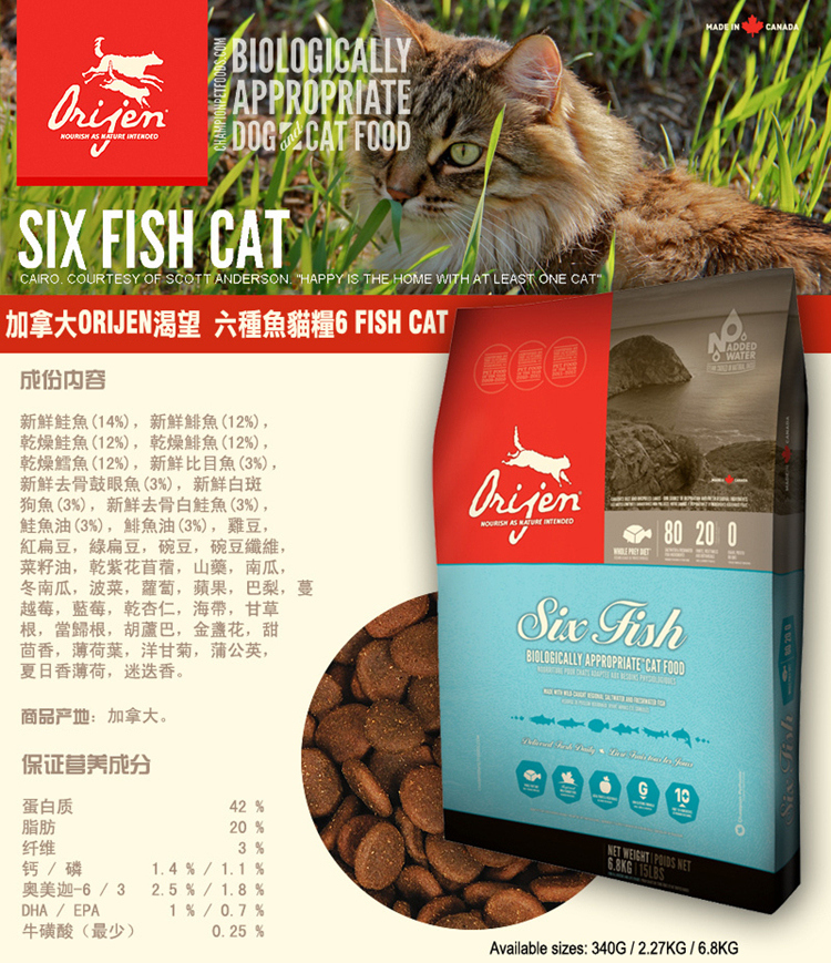 Canada Orijen prized hunting for cat food Six fish without valley 4 pounds 1 8kg