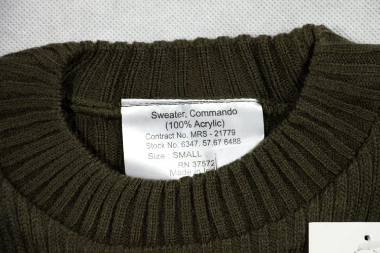 Authorized ROTHCO USMC SELAS G.I. Commando Sweater Army Green 6347OD