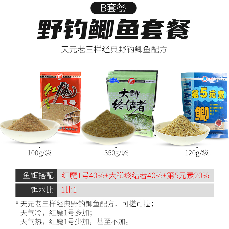 Wuhan Tianyuan New Three Set Four Seasons Classic Crucian Carp Bait Old Three Kinds of Bait Wild Fishing Bait Recipe