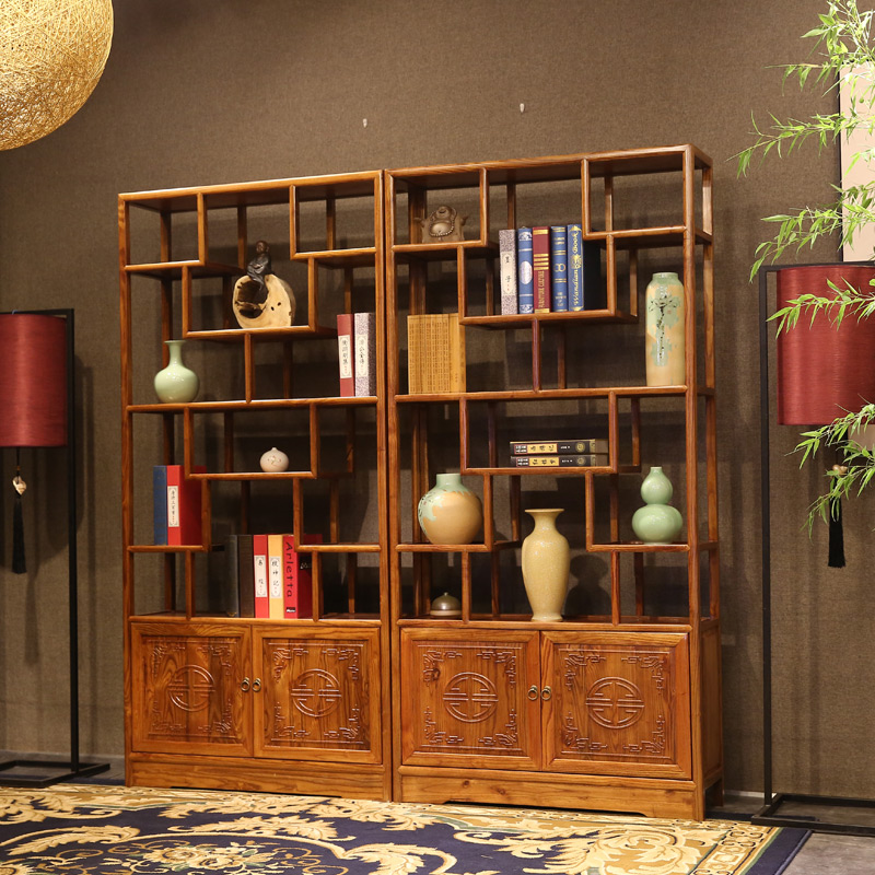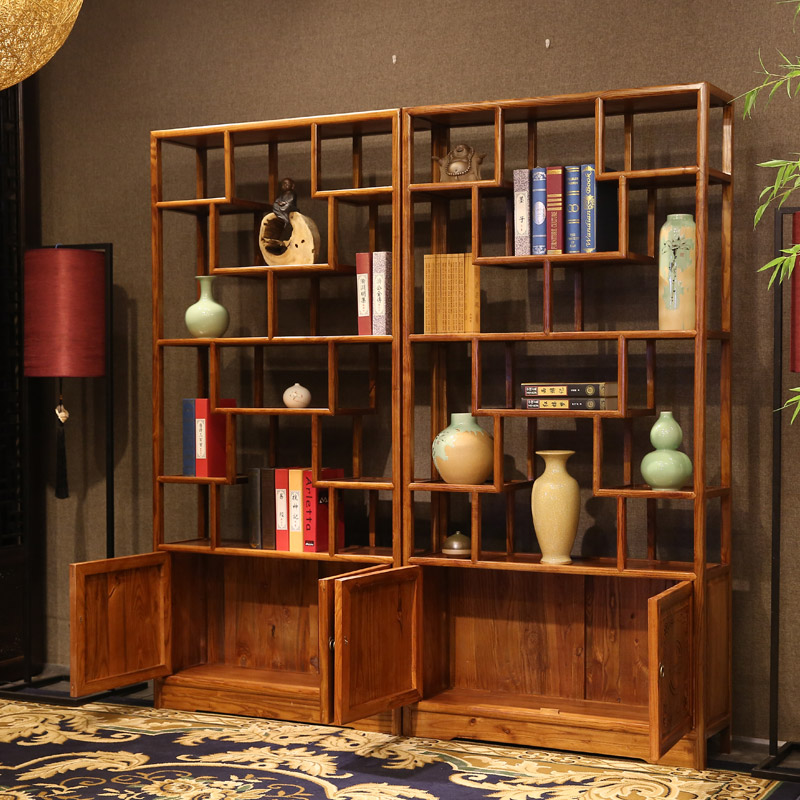 Pleasant Family Bogu Frame Solid Wood Bookshelf South Elm Wood Multi Treasure Cabinet Containing Cabinet Bookcase Bookcase Shelves Landing Cabinet Dual-use