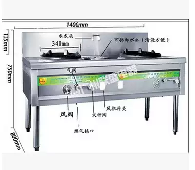 Commercial gas stove, hotel special cooking stove, hotel Menghuo stove, gas double-fried single-tailed frying stove, Menghuo stove