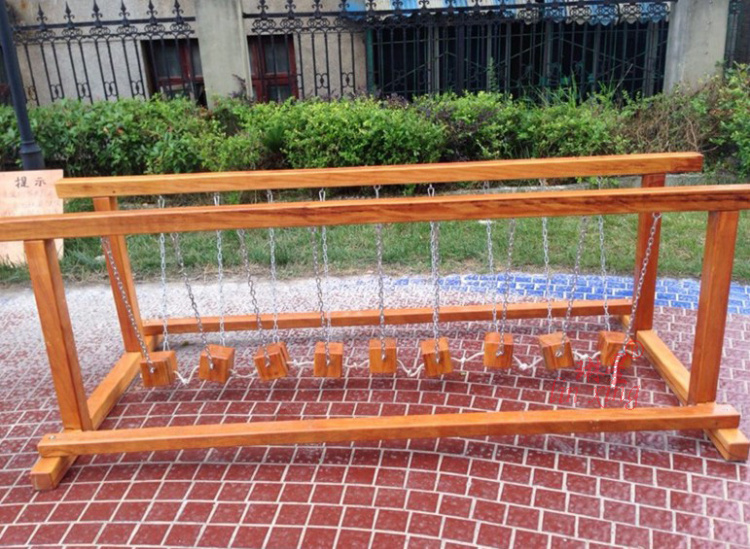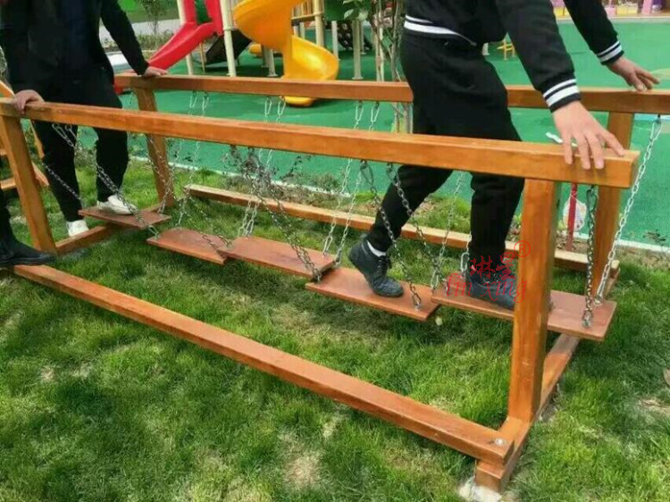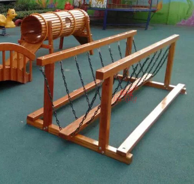Kindergarten large outdoor toys imported yellow flower pear wooden bridge climbing children balanced wooden bridge pile