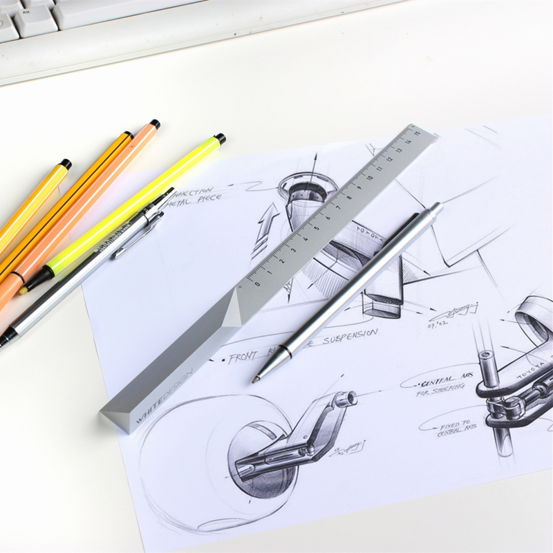 WHITE DESIGN Architectural Straight Ruler Aluminum Alloy Creative Grid Office Stationery Designer Metal Ruler