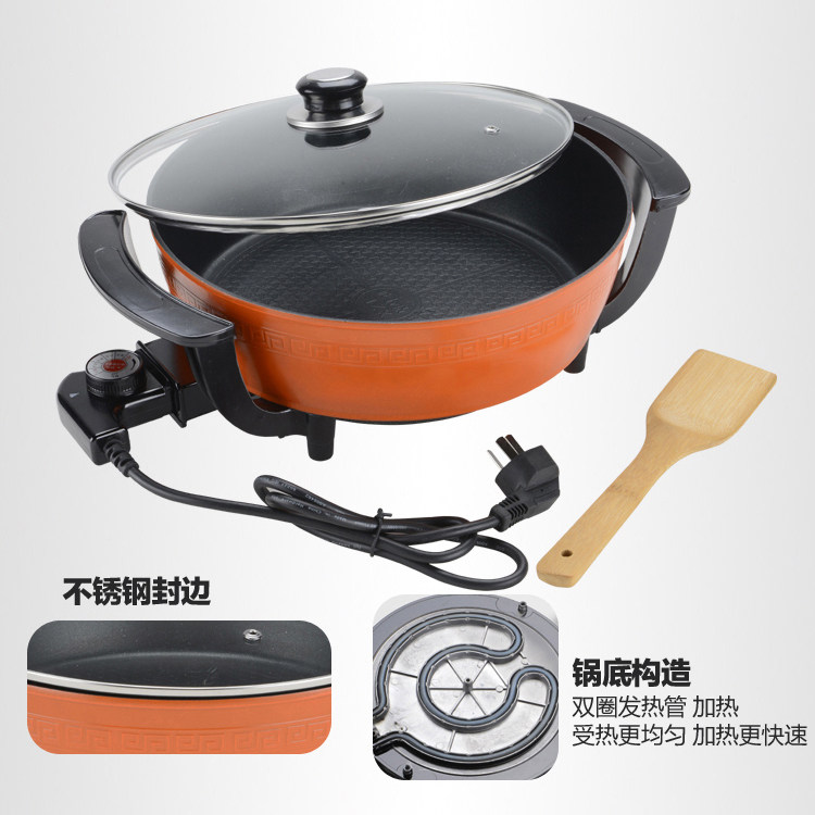 Dazzling Korean-style Multi-functional cuisine pan Home Electric frying pan Hot pot frying pan Steamer Pan without oil smoke without dipping into the pan