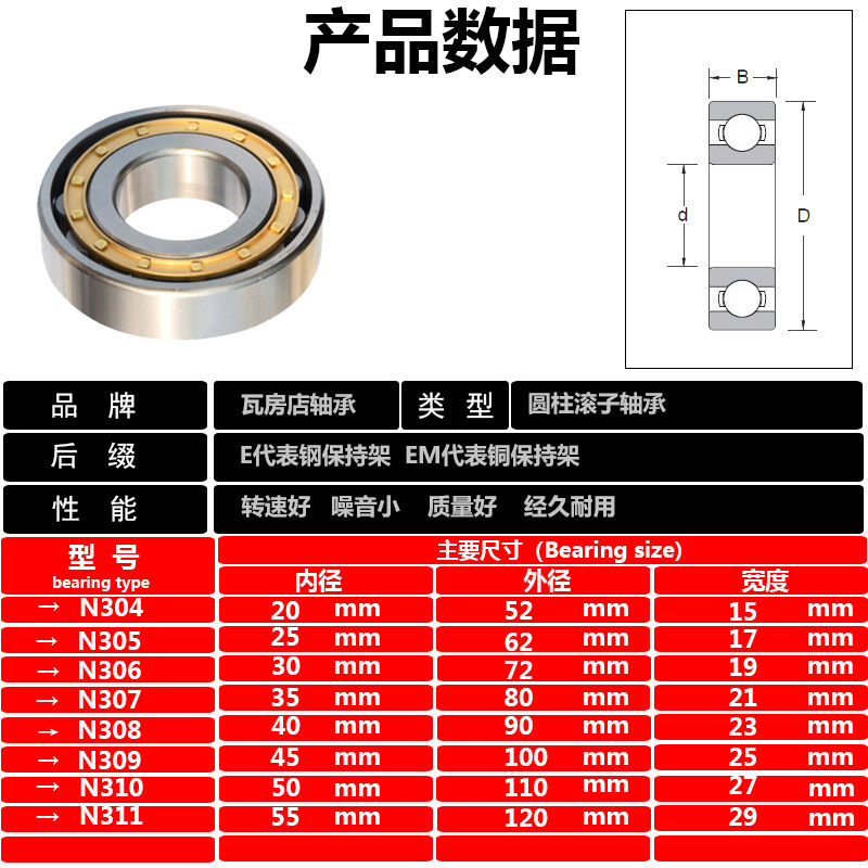 Harbin Rutai bearing N304 N305 N305 N307 N308 N308 N309 N310 N311EM N311EM N311EM N311EM