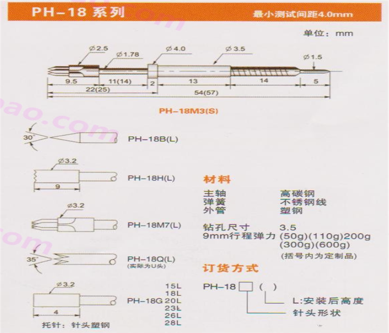 PH-18G 23L Huarong ICT Test Needle Flat Head Plastic Head Probe PCB Spring Thimble