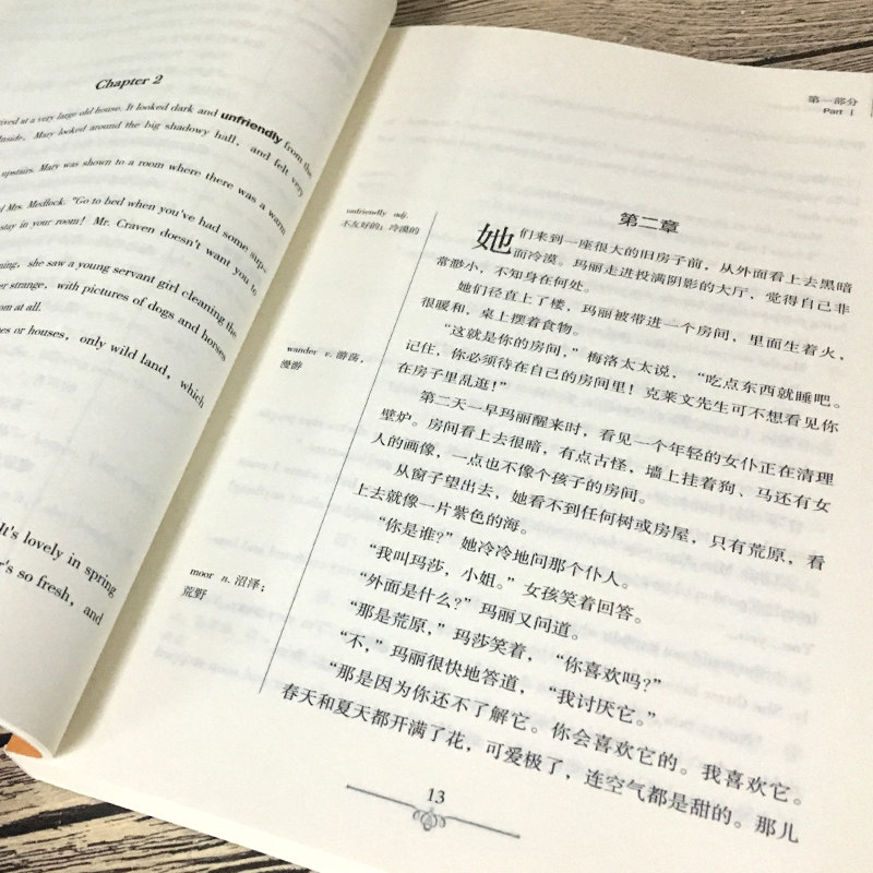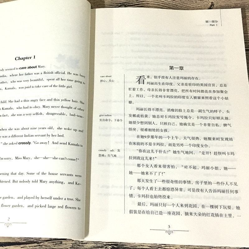 Secret Garden Chinese-English bilingual version Chinese-English version English-Chinese Chinese-English bilingual Chinese-English classic world famous foreign literature novel English version original English reading materials junior high school students extracurricular reading books z
