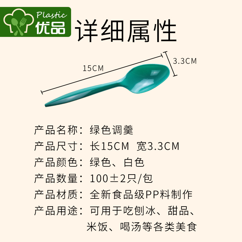 Disposable spoon 15CM green dessert spoon pp small spoon Cake spoon Western spoon Soup spoon Packing delivery spoon