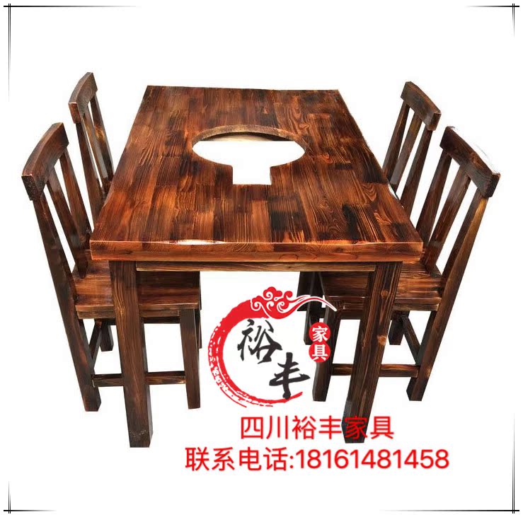 Hot Pot Table And Chairs Charred Wood Dining Table And Chairs Fire Wood Dining Room Barbecue Table And Chairs Solid Wood Oven Table And Chairs