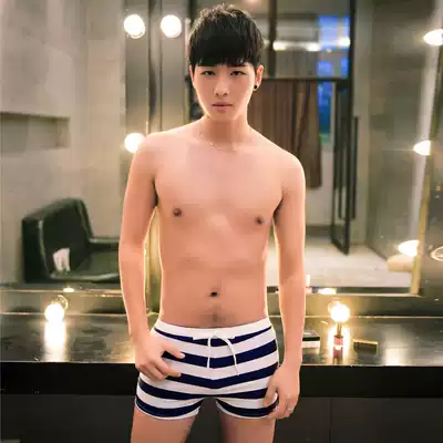 Korean version of black and white men's flat corner swimming trunks Korean design sports swimming fitness male hot spring swimming pants