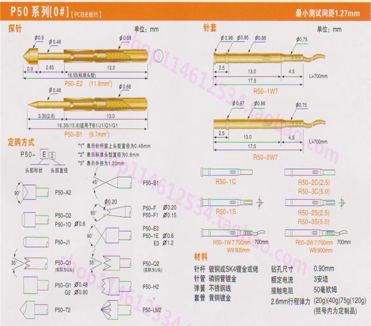 Huarong Probe PA50-J1 0 9 Round Head Needle 0 68 Precision ICT Test Needle PCB Spring Needle