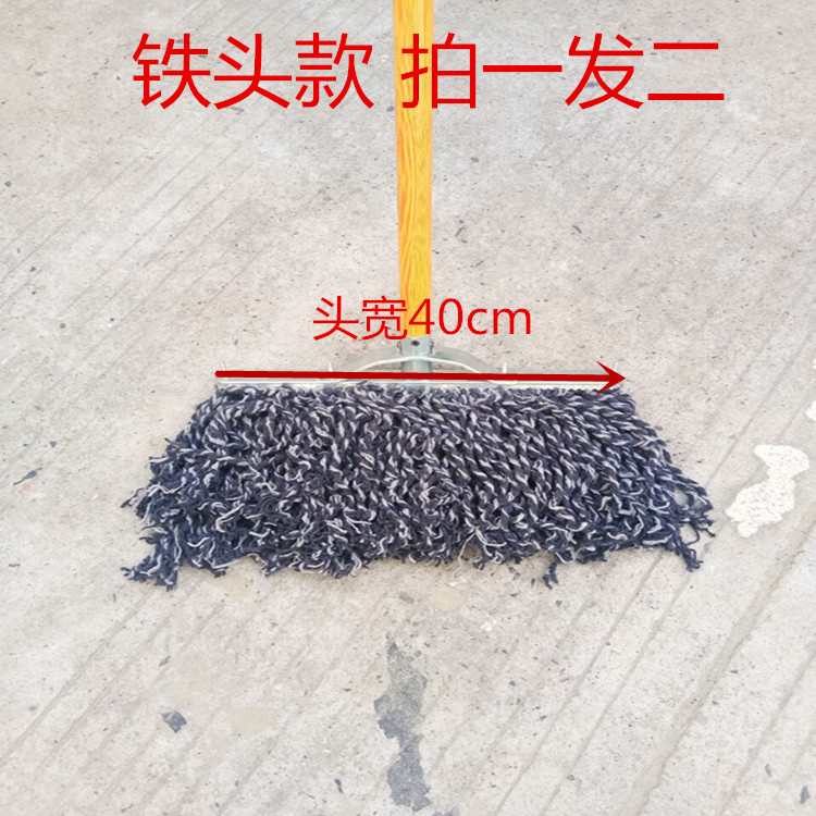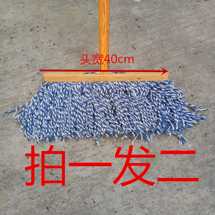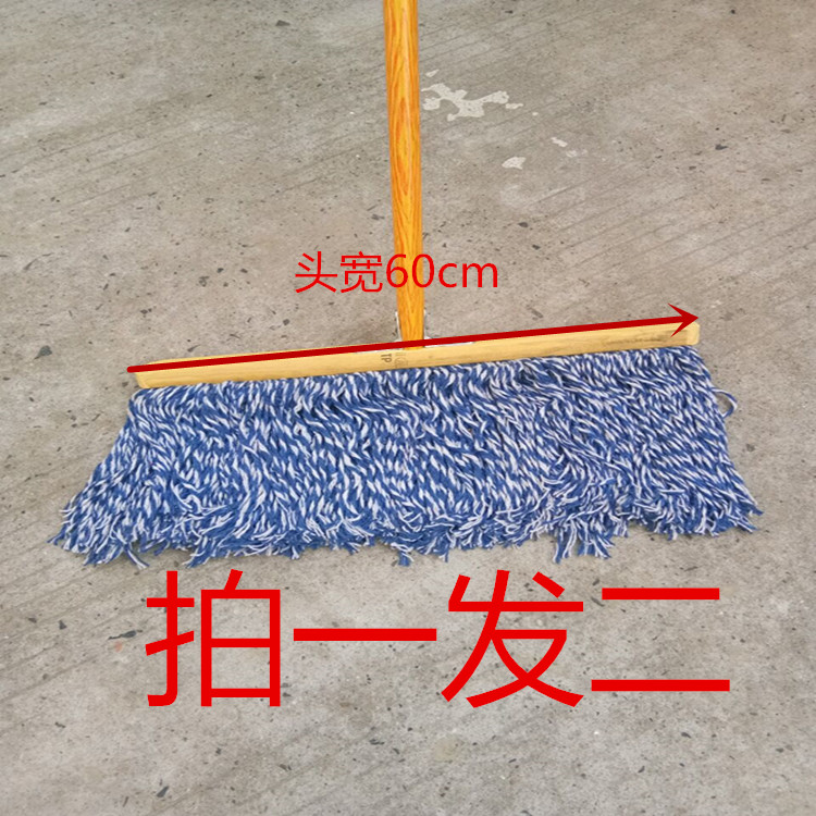 Old wood handle flat head row cotton wool cotton fabric mop water dust drag wide head floor mop cement ground mop