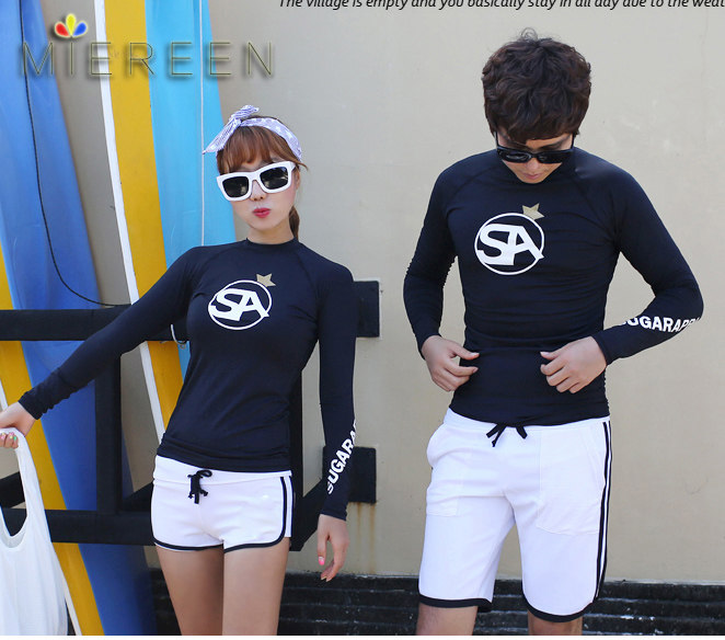 South Korea's new couples black printed long sleeve sunscreen swimsuit stretch quick-drying fitness conservative snorkeling surfing suit
