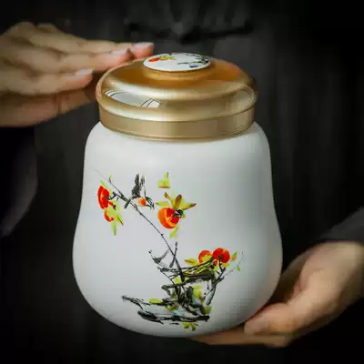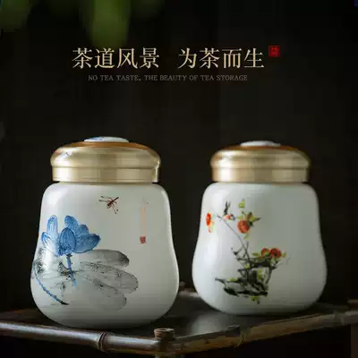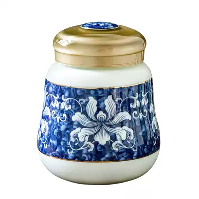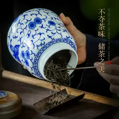 Jingdezhen ceramic tea jar Large red green tea sealed jar Blue and white porcelain 1 kg tea sealed jar