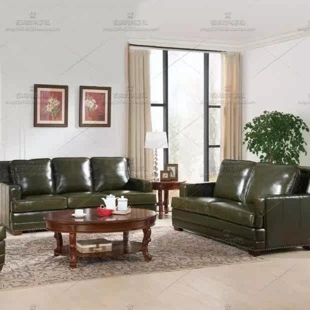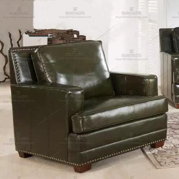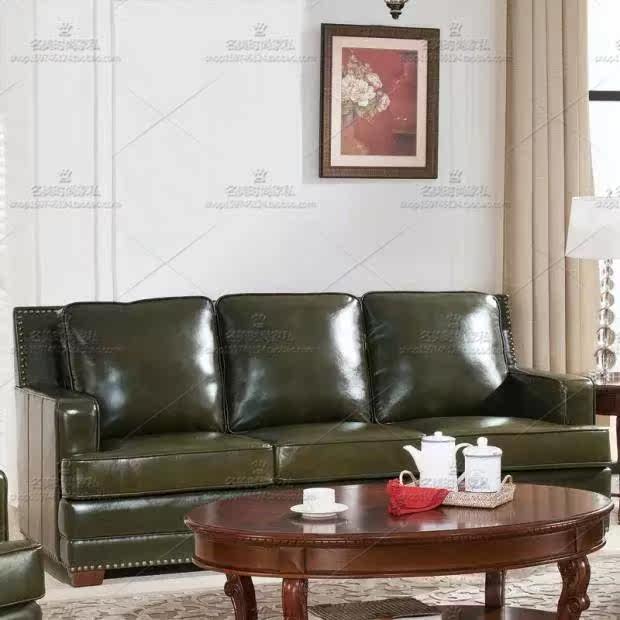 American Retro Leather Sofa French Industrial Style Cafe Leather Art Sofa European Office Dark Green Sofa