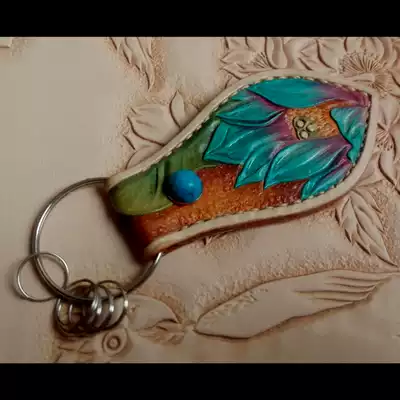 Handmade leather keychain keychain custom women's leather carving painted lotus keychain