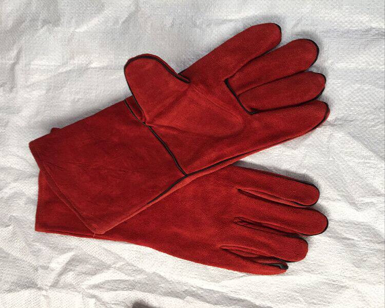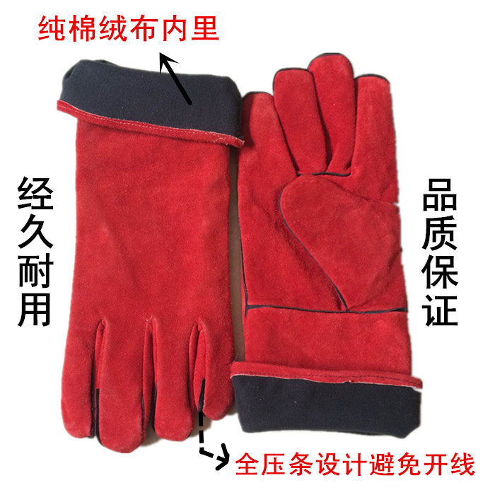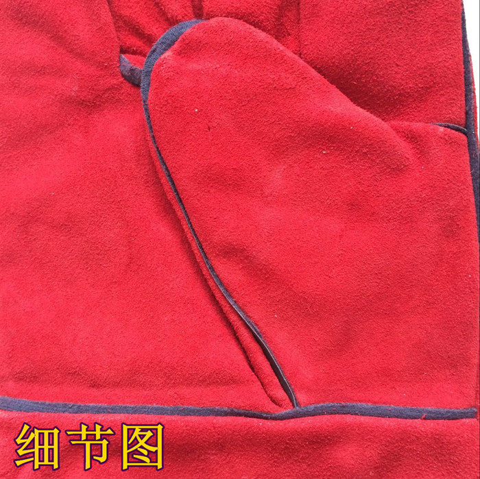 Welding gloves welder lengthened welder wear-resistant cowhide red welding heat-resistant stab-resistant two-layer thickened cowhide gloves