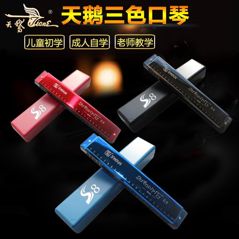 Swan 24-hole polyphonic harmonica three-color optional self-study secret disinfection cotton piano cloth