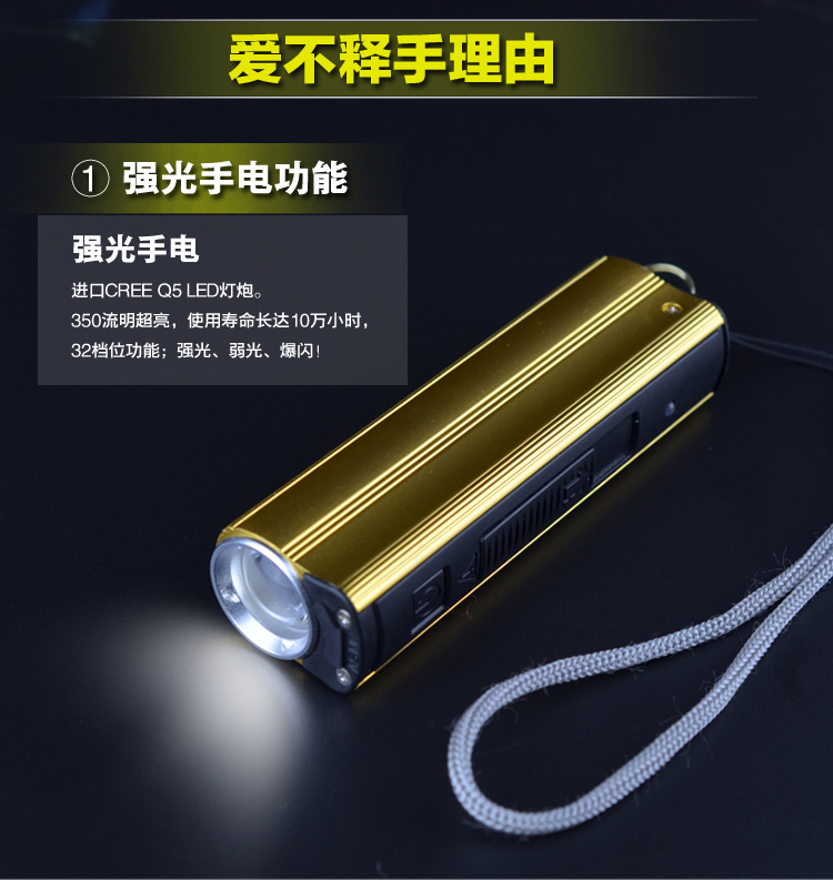 USB Floodlight Charging Miniature Flashlight Ultra Bright Home Mini Pocket Waterproof Far Shot Cigarette Lighter mobile charged
