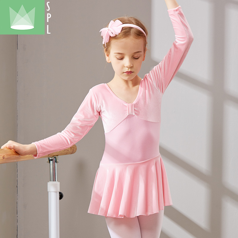 Champindine dance costumes children's women rehearsal for young children Spring new ballet dresses out of suit gold velvet