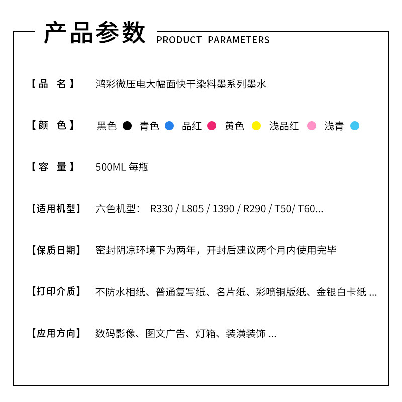 Hongsheng Hongcai anti-UV high light fast dye ink suitable for Epson R330 L805 1390 continuous supply filling ink