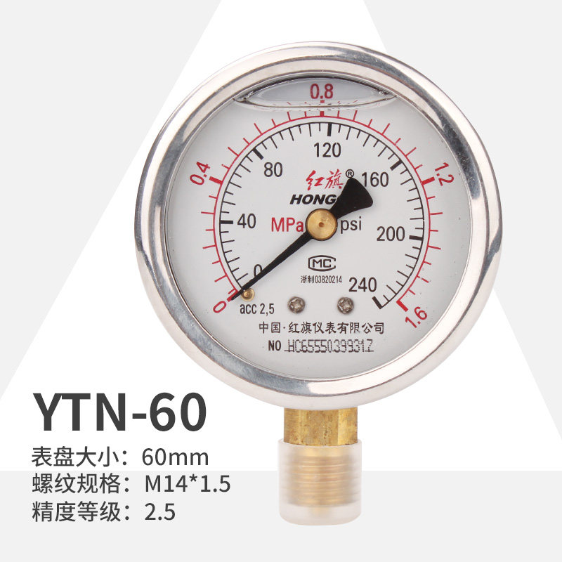 Red flag Pressure meter YTN60 Shock Resistant Water Pressure Gauge Oil Pressure Gauge Seismic vacuum Table airgauge 0-1MPA