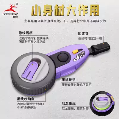 Flying deer tool ink bucket woodworking special drop-resistant automatic scribing wire special ink bucket aluminum alloy manual ink bucket line pull