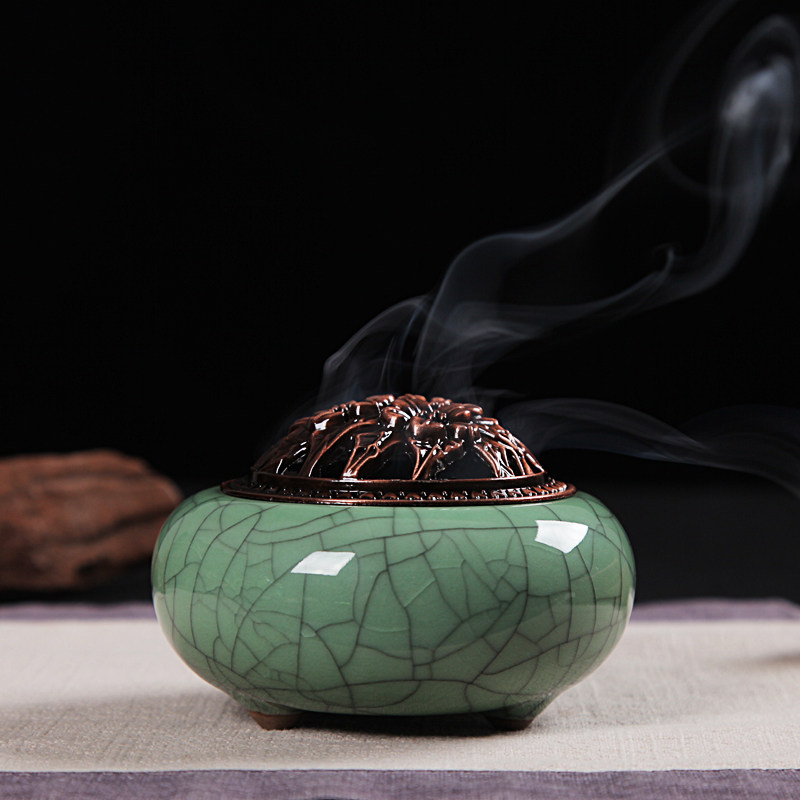 Longquan Royal Tea Celadon Aromatherapy Furnace Ceramic Incense Furnace Buddha Furniture Handmade Antique Line Incense Sandalwood Agarwood Home Incense Furnace