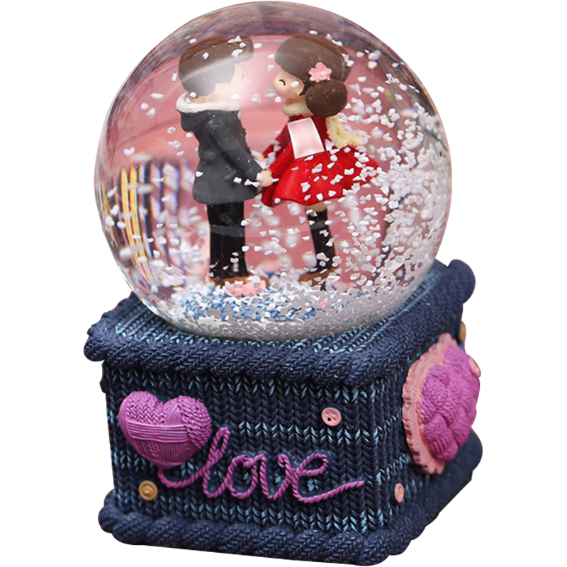 Creative romantic blue sweater couple gift crystal ball birthday Valentine's Day gift home decoration snow Music Box