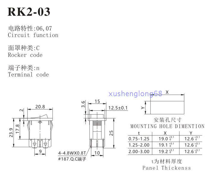 Master SOKEN seesaw switch RK2-03 boat type switch 21*15 2 gear 4 feet with UL CQC current 10A