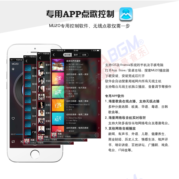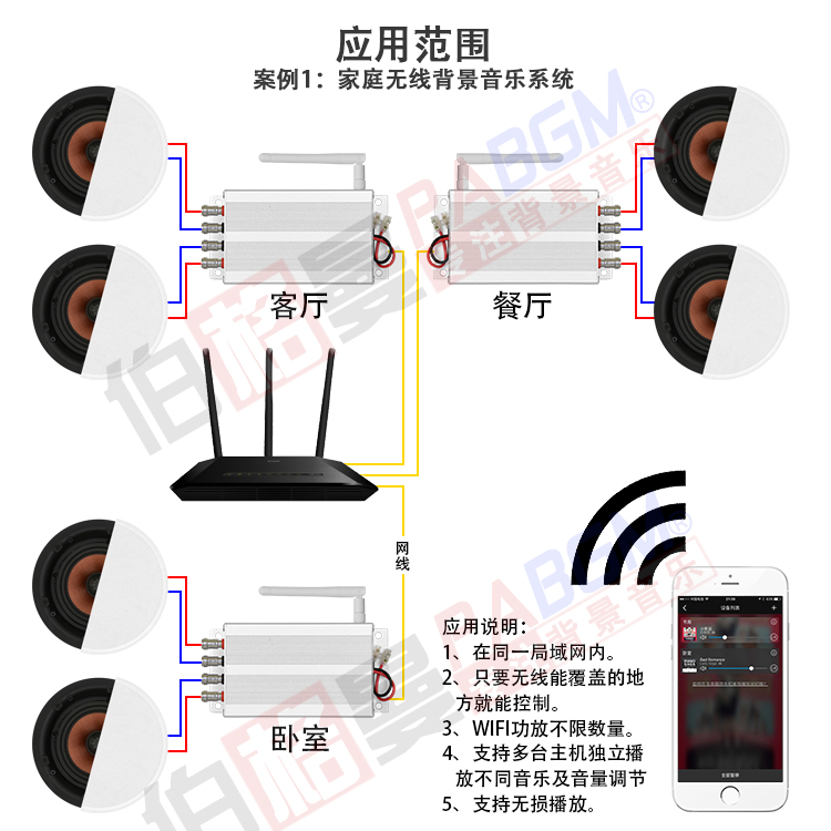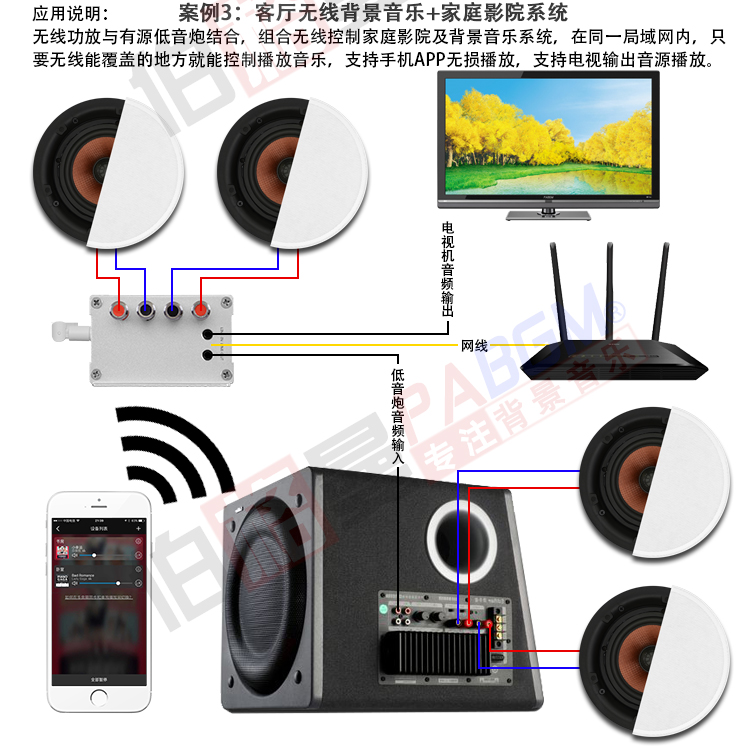 WIFI wireless background music controller mobile phone APP control stereo power amplifier output line