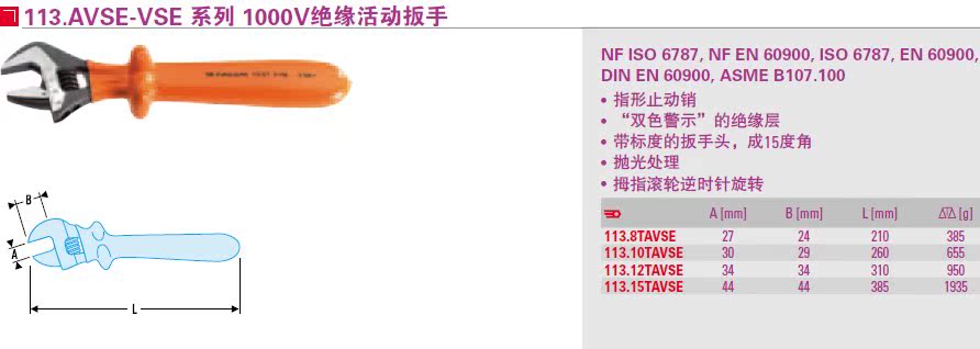 FACOM tools 1000V insulated adjustable wrench 12 inch 113 12TAVSE