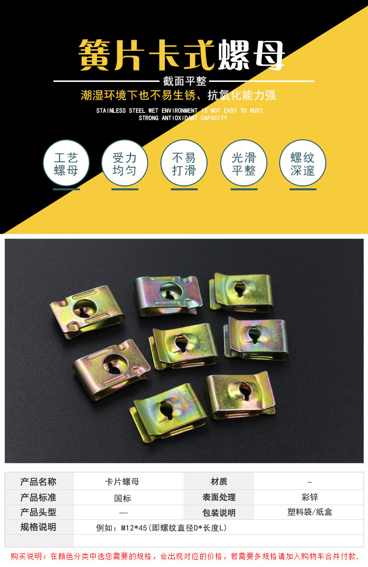 Self-tapping screw nut card Motorcycle electric car plastic parts special plating color plating green self-tapping screw clip