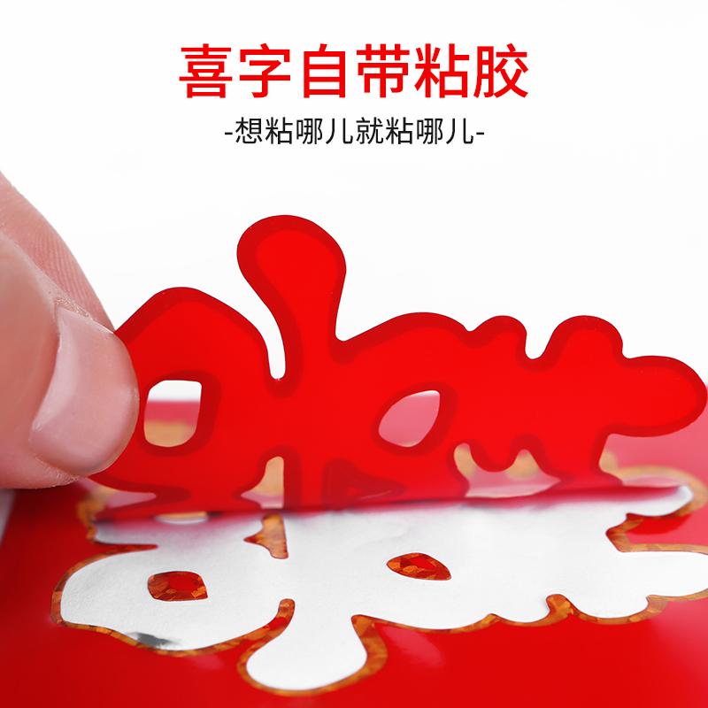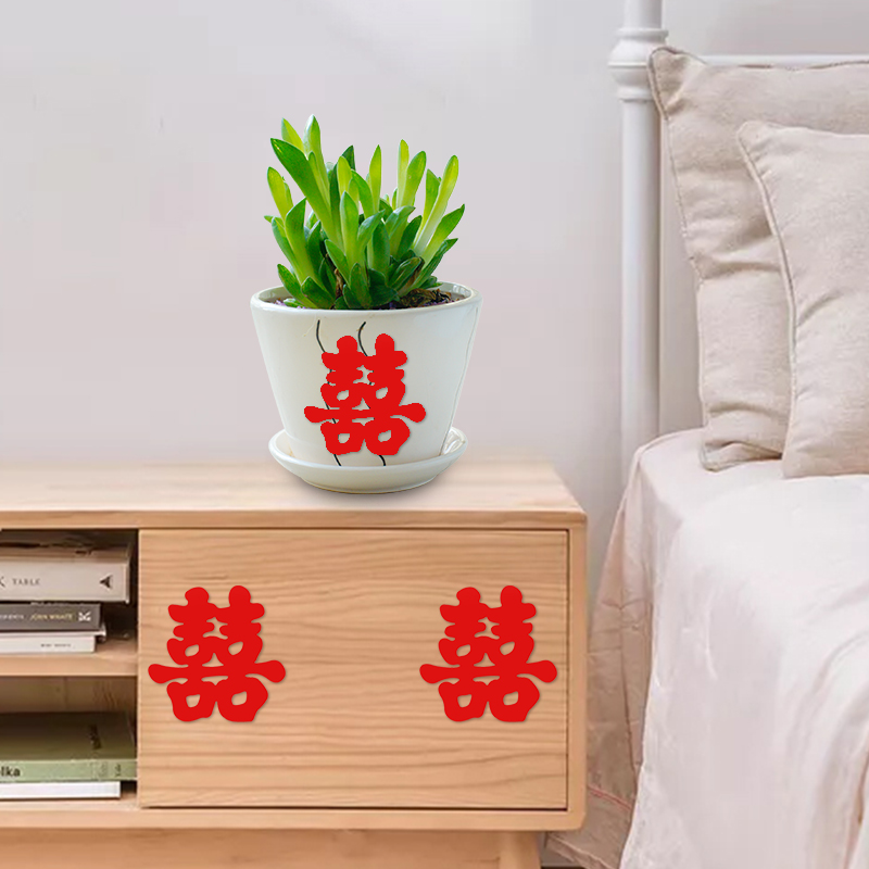 Wedding Happy character Furniture Stairs Happy adhesive Creative Self-adhesive Mini Chinese Double Festive Character Cloth Stickup Items