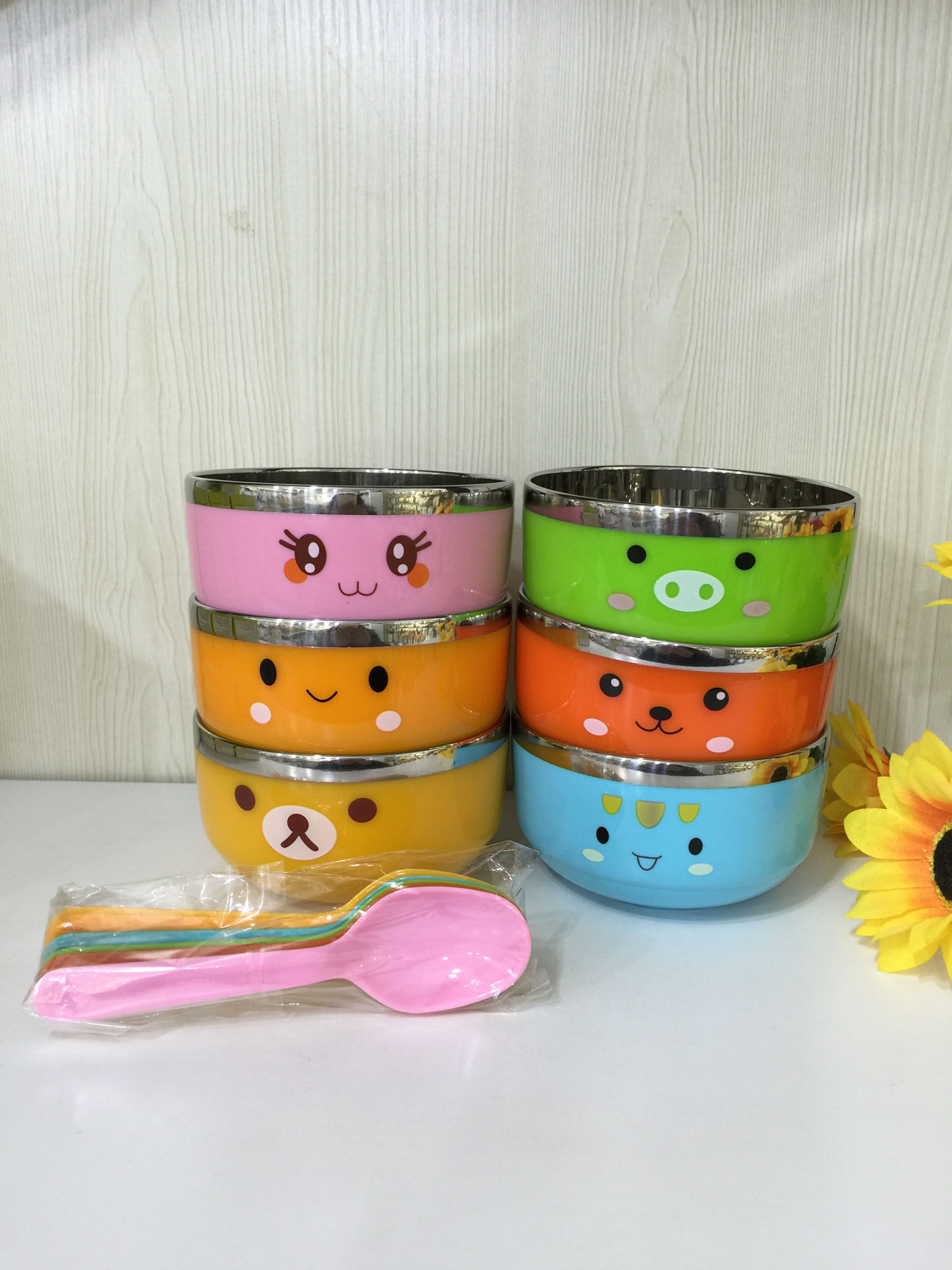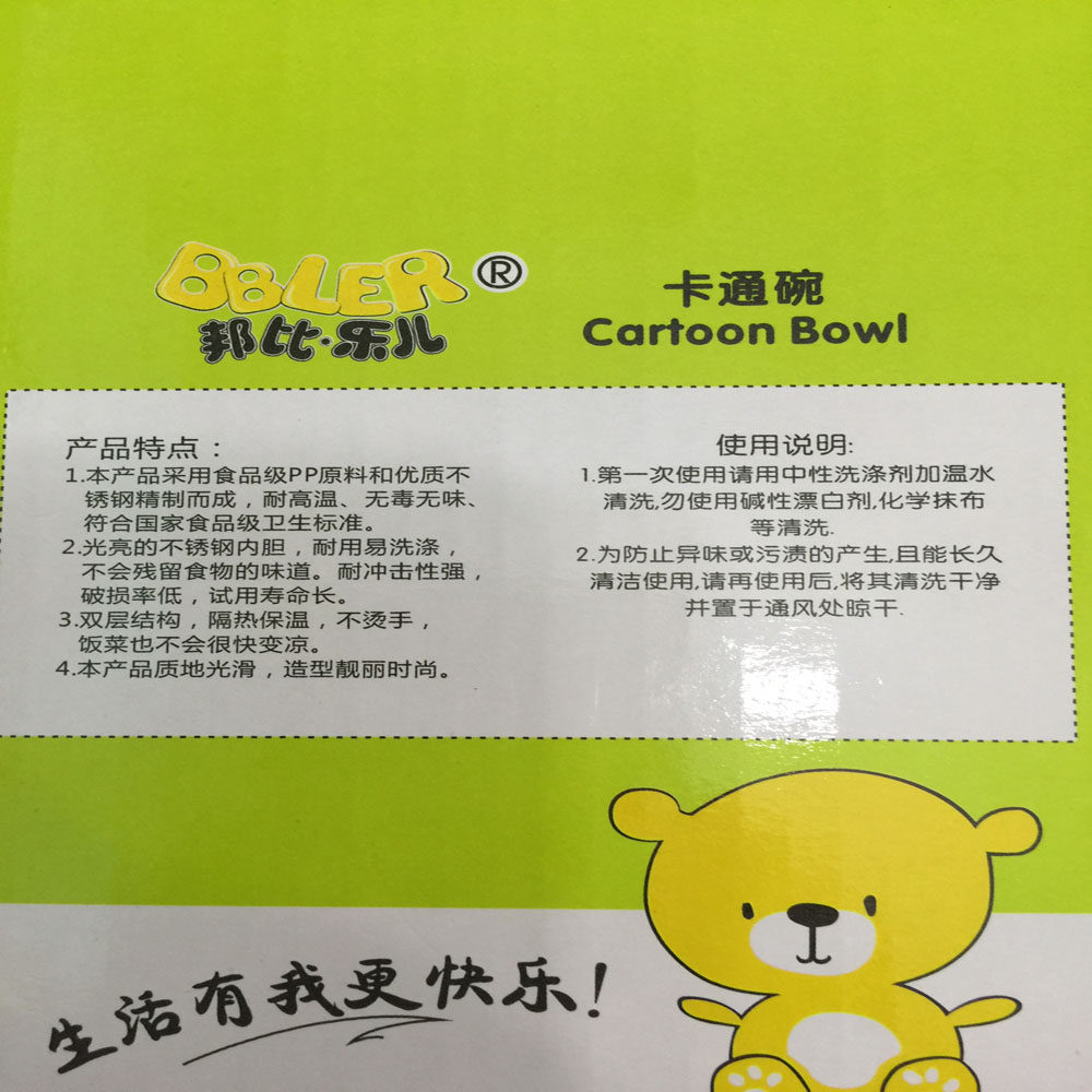 Bon Pabbile Baby Baby Dining Bowl Cartoon Bowl 6 Loaded PP Raw Material and Stainless Steel Refined Bowl 10 5cm