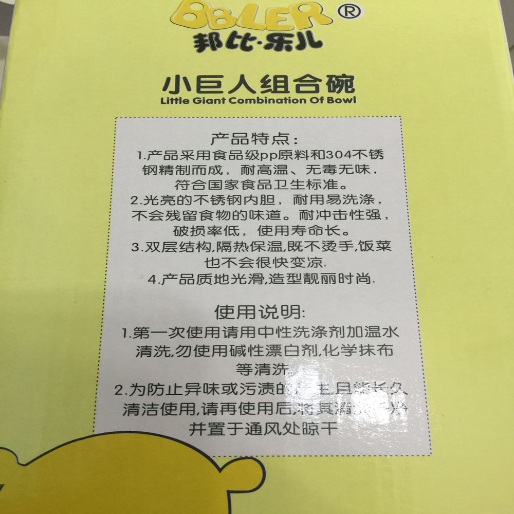 Bunpa Bile Baby Cutlery Small Giant Combined Bowl 304 Stainless Steel Refined Bowl Spec 12cm