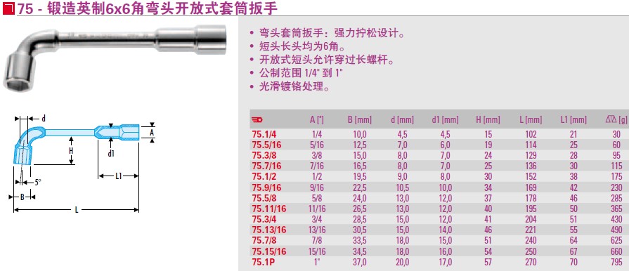 FACOM forged Ying system 6x6 angle elbow open sleeve wrench 75 1 2