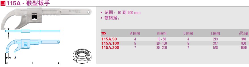 FACOM Tool Hook-Shaped Wrench Monkey Type Wrench 115A 200